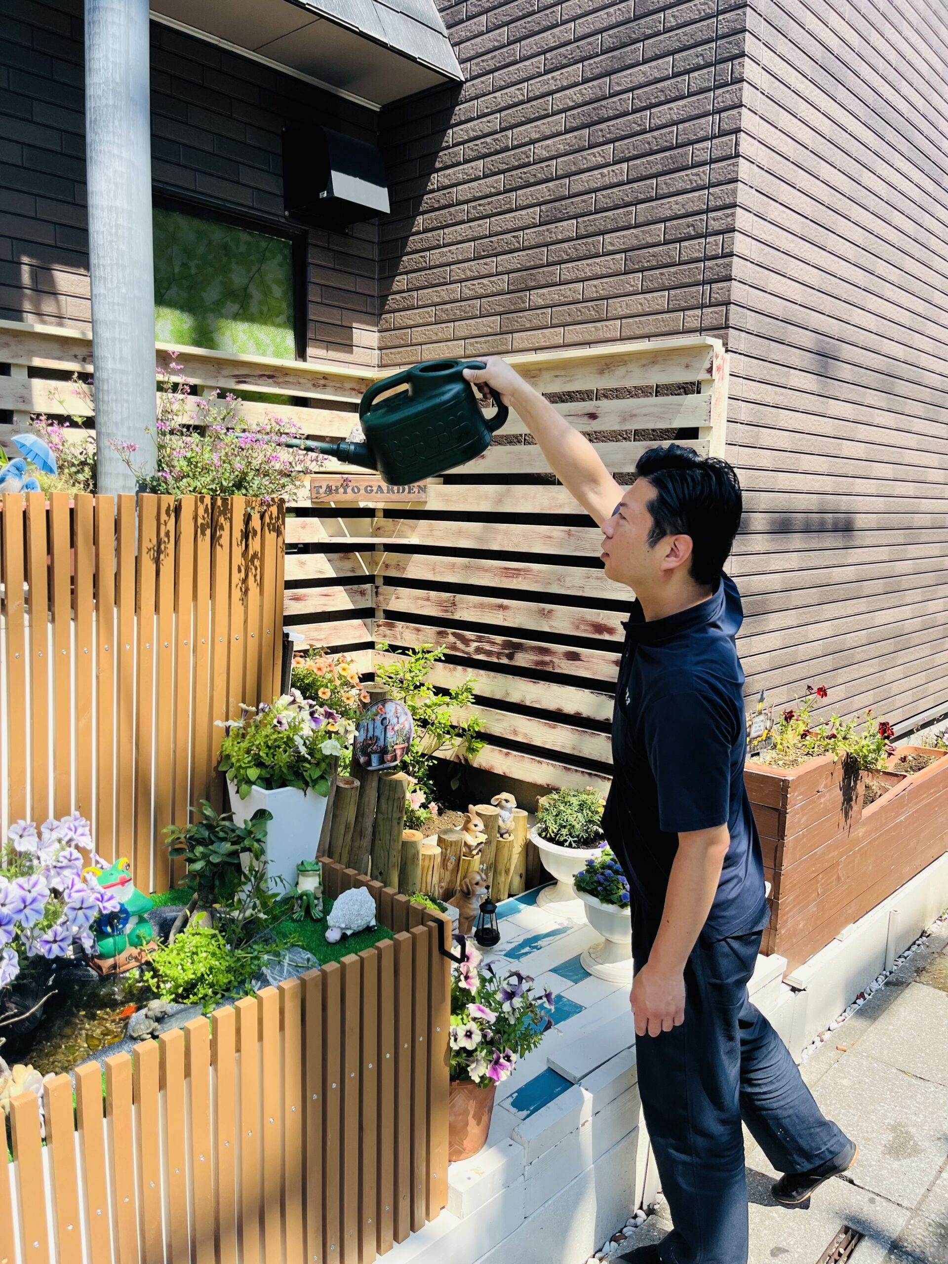 ”私この道通るの楽しみだからいろんなお花入れてね!